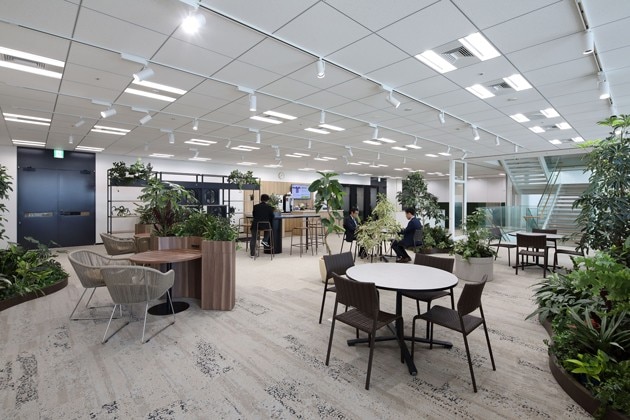 2023年5月東京ミッドタウンに移転したダイキン東京支社。当社の重点テーマである①「環境・カーボンニュートラル」を中心に新たなビジネスの創出を目指す社内外との連携・協創活動の場と、②「生産性や働きの質の向上」を目指したウェルビーイングの取組みを紹介します。